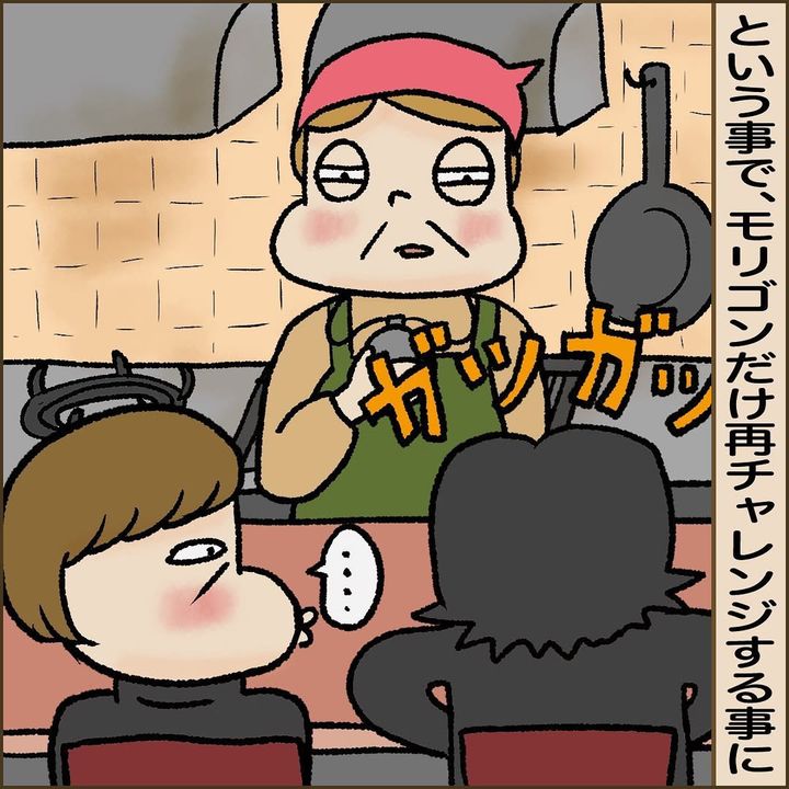 「今日もちょっくら金稼ぎに行かん?」と、得意げな表情を浮かべるモリゴンの描写が面白く、思わずクスリと笑ってしまいました。これだけ何度も大食いチャレンジをされてしまうと、店側も商売あがったりですよね。