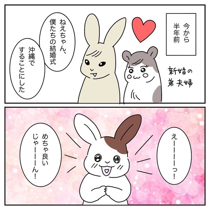 弟夫婦の結婚式に出席するため、家族みんなで沖縄に行くことになりますが…?