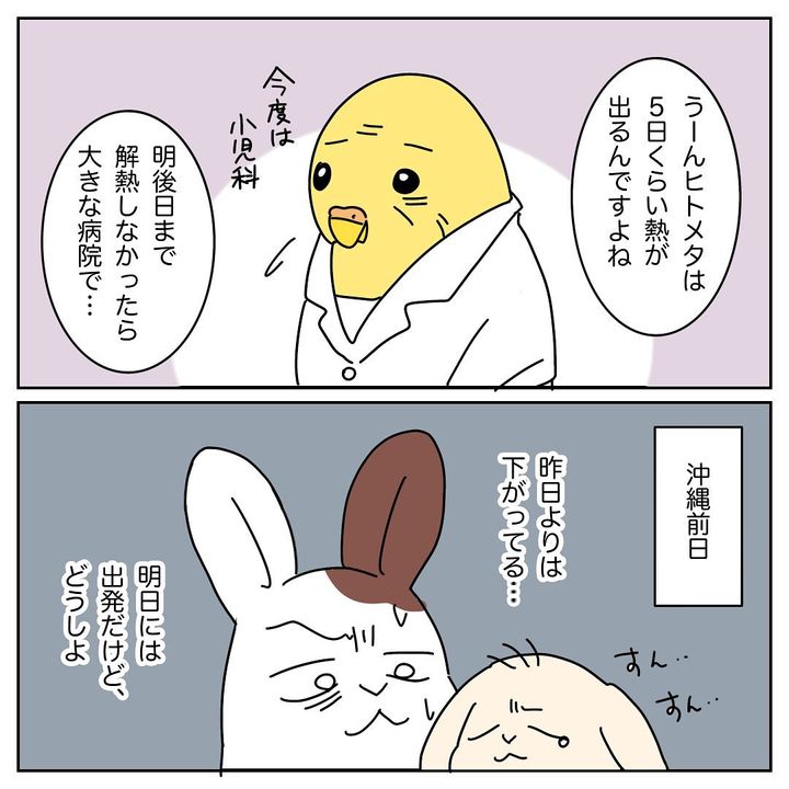 家族で沖縄旅行を計画するも…直前に次男が《38.5℃の熱》を出し、病院に行った結果→医師からの診断に「ええ!?」