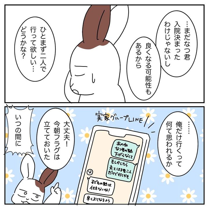 楽しみにしていた沖縄旅行を諦め、夫さんとはる君の2人で行くことを提案したはる子さんの決断、素晴らしいですね。無理をしなかったおかげで、なつ君も入院せずに済んだようで、一安心しました。