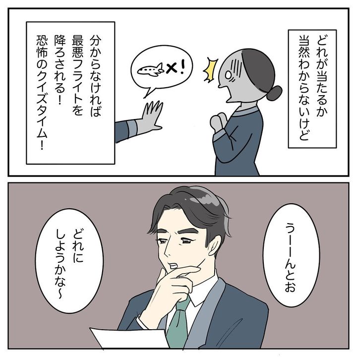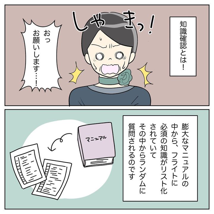 膨大なマニュアルの中からランダムで出題される知識確認、確かにこれは恐怖ですね。キャビンアテンダントに必要な知識量の多さがよくわかります。