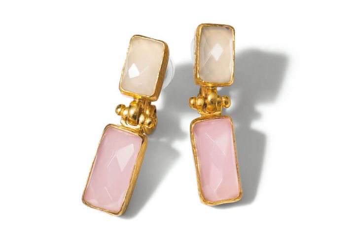 大ぶりながら透きとおるようなピンクストーンは、ワンツーコーデに華やかなアクセントをプラス。