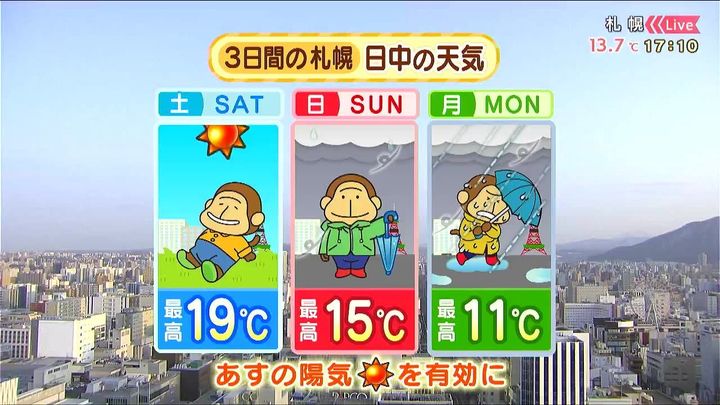 3日間の札幌です! 土日月の天気をもんすけでお伝えします!