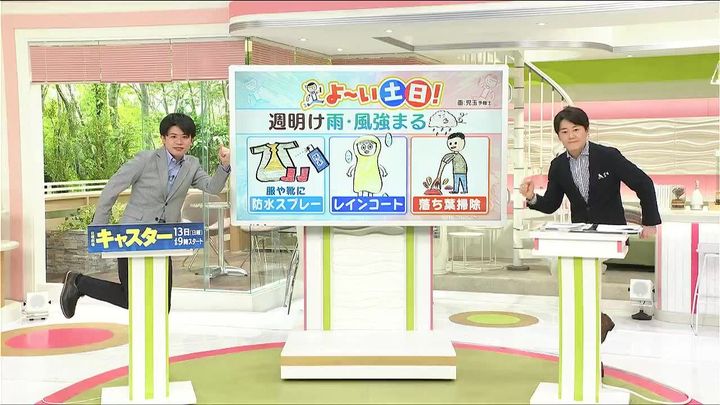 よ~い土日ポーズの児玉晃気象予報士とHBC堀啓知アナウンサー