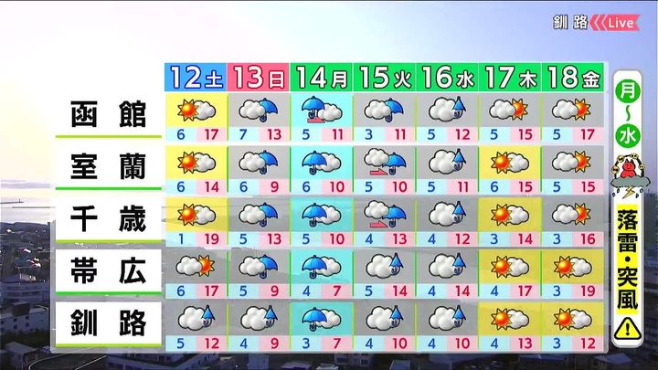 北海道のあす12日(土)の天気と、週間予報を、HBCウェザーセンターの児玉晃(こだま・あきら)気象予報士がお伝えします。