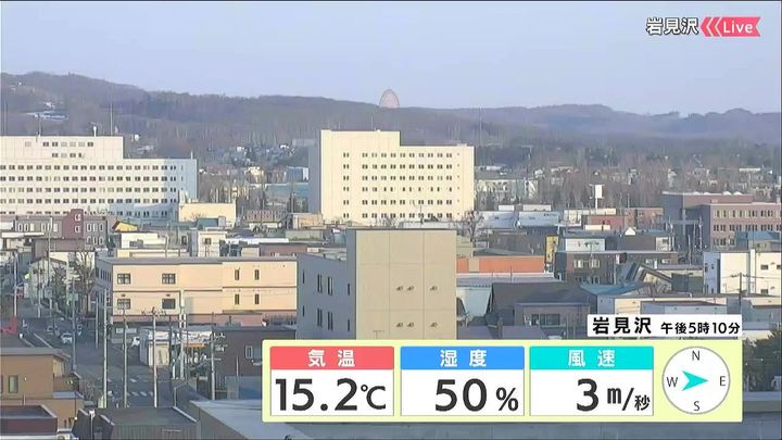 岩見沢では北海道グリーンランドの観覧車が見えていますね。遊園地のオープンは4月26日です。この時期はジェットコースターのように気温のアップダウンが大きいので体調崩さないようにしてください。