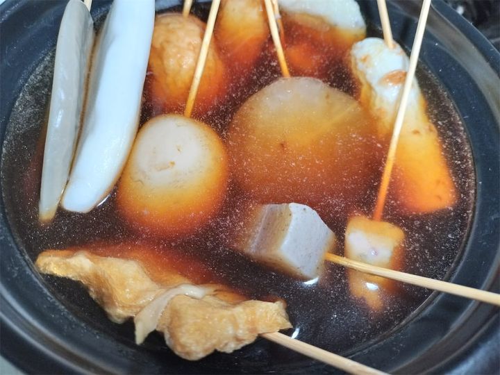 しかしここでも難問。静岡単体のアンテナショップは都心から撤退していて、見つけたのは秋葉原の「日本百貨店しょくひんかん」内の「ふじのくに おいしい処静岡『おいしず』」というアンテナコーナーでした。他の具は売っていなかったのですが、ここでようやく黒はんぺんを購入することができました。信田巻きも欲しかったのですが残念なことに売っておらず、仕方がないのであとは自分の好みの具をいくつかチョイスして、ひとつずつ串に刺して鍋に入れてみました。この「串に刺す」も静岡おでんたる大事なポイントです。