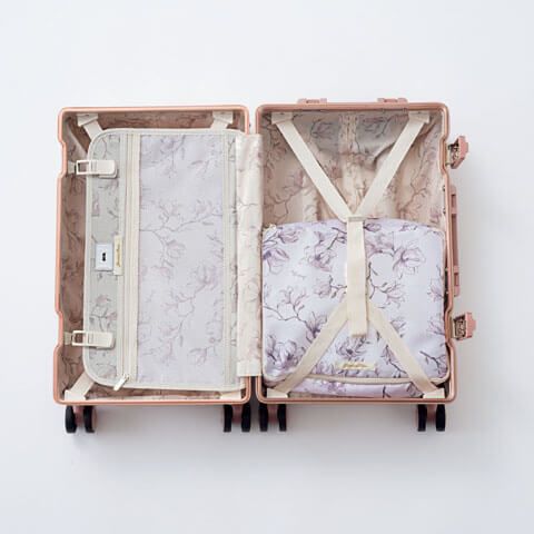 ace.(エース)はトラベルからビジネスまで幅広いアイテムを取り扱う老舗メーカーが手掛けるブランド。国内ブランドならではの高品質で繊細なものづくりが特徴。Jewelna Roseとace.がコラボしたアルミラゲージ。リュクスなローズカラーと高級感あるボディ、フェミニンな花柄の内装とお揃いのパッキングケースが大人女子向き。