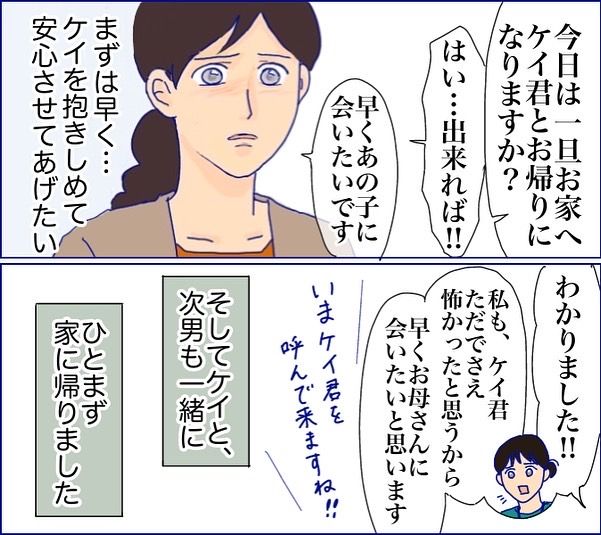 現在もケイは、当時のことを忘れてはいません。でも、家では兄たちと楽しく笑い合い、学校へも毎日通えています。普段から、何気ないできごとも話てくれるので、私としては見守りながら過ごしています。