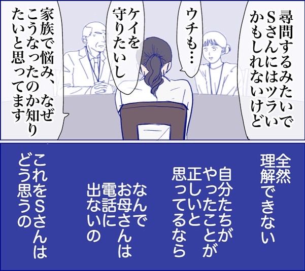 SさんとSさんのお兄さんは、日頃からケイくんがSさんにひどいことをしていると思っているようで、とにかくケイくんを悪者にして、謝らせたそうです。