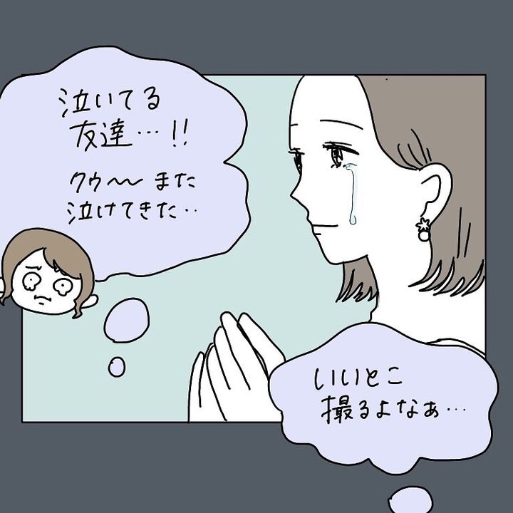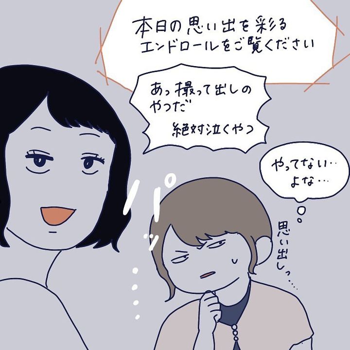 こんにちは!Instagramで日々の暮らしを漫画で紹介している、Web漫画家のmomoです。出席した結婚披露宴で友人と「笑い方のクセ」について話していたわたし。「手を叩いて笑うのはもう卒業した!」なんて豪語していたら、まさかのエンドロールムービーで盛大に伏線が回収される展開に…。クセって本当に怖い!ミラクルな1人フリオチ劇、笑ってやってください…。