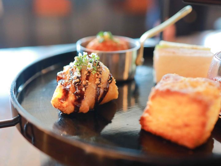 セイボリー4種は、「プルマン東京田町」の総料理長・福田浩二シェフが中心となり、日替わりでメニューが決まります。ホテル内レストランで提供しているお料理と同じものをミニサイズで提供することも。