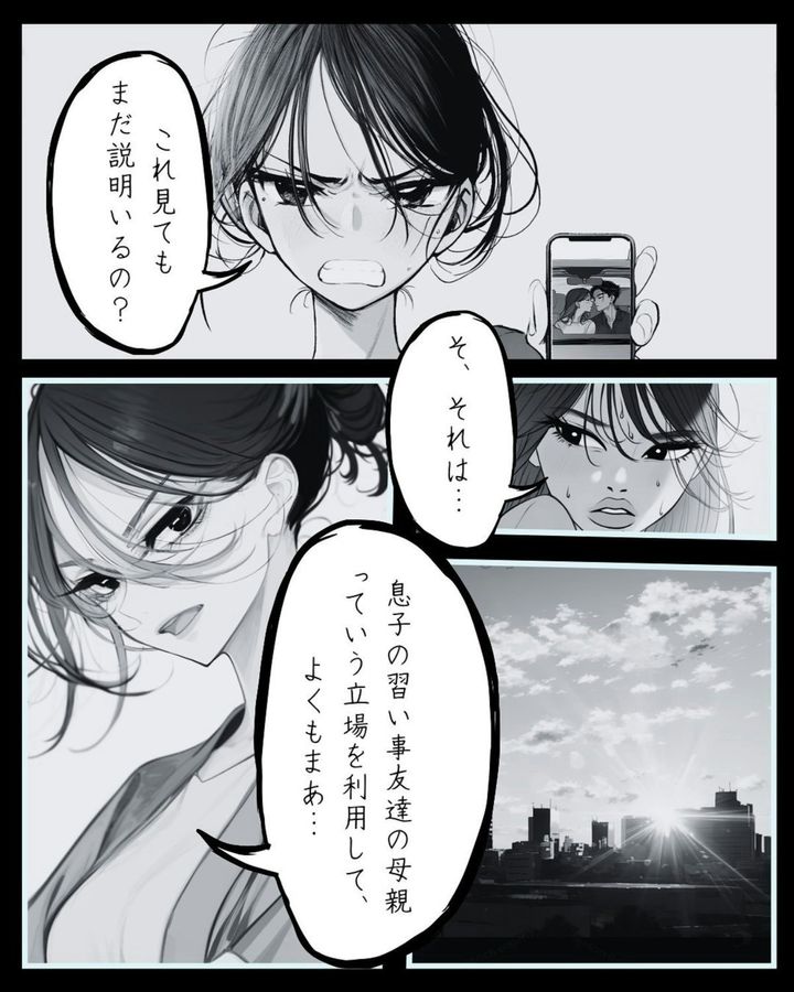 「急いでいる」と言い、立ち去ろうとする不倫相手に対し、すかさず証拠を突きつけた美咲。美咲は探偵に調査を依頼したため、決定的な証拠をつかんでいます。相手は言い逃れできない状況です。