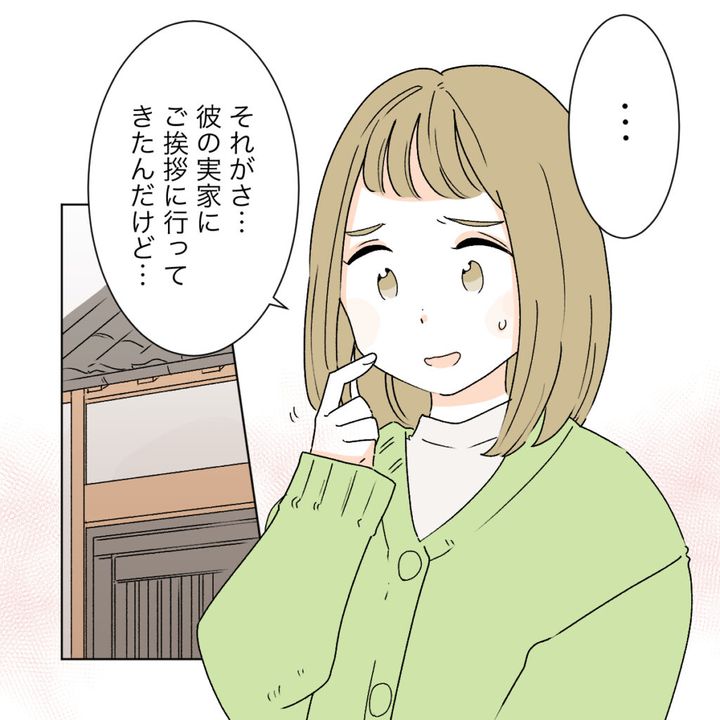 「・・。それがさ・・彼の実家にご挨拶に行ってきたんだけど・・」と気まずそうにナツさんが口を開きました。