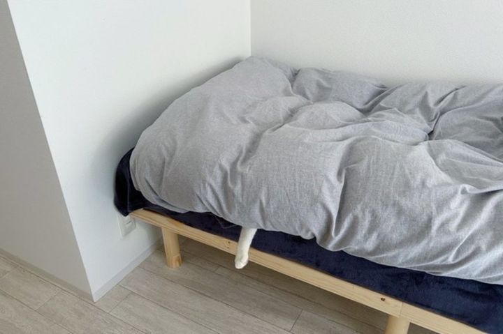 見送り、無し。布団から片方だけ出された猫の手にほっこり