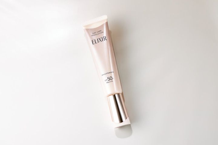 1本でふっくら柔らか透明美肌へ導く薬用UV乳液。乳液・化粧下地・プロテクターの3つの効果が1本に搭載され、大人の肌の透明感やハリ不足をケアして柔らかな透明美肌を叶える。べたつかず、みずみずしいなめらかな使い心地。化粧もち(粉よれ・薄れ・べたつきのなさ)も抜群。SPF50+・PA++++ エリクシール デーケアレボリューション ブライトニング + ba【医薬部外品】 35mL 3,740円/エリクシール