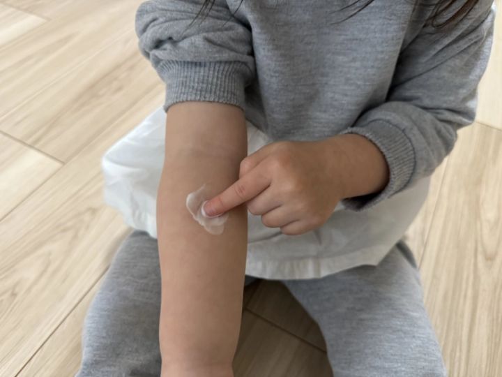 乾燥肌の大人にもぴったりということなので、私も使ってみました。コンパクトサイズだけど伸びが良いので少量でサラッと塗れます。ほんのり優しい香りもしました