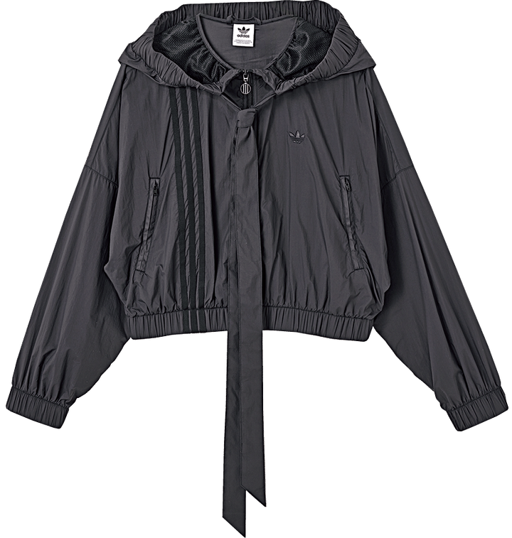 グレートーンで全体をシックにまとめて。こういったトレーニングジャケットは裾が絞れるタイプも多いので、キュッとして、チラッと肌見せするのもヌケ感が出る着こなしテク。ウインドブレーカー¥15,400(オークリー/ルックスオティカジャパン カスタマーサービス)、スカート¥49,500 (セオリー/リンク・セオリー・ジャパン)、ブーツ¥46,200 (ファビオ ルスコーニ/伊勢丹新宿本店 本館2階 婦人靴)