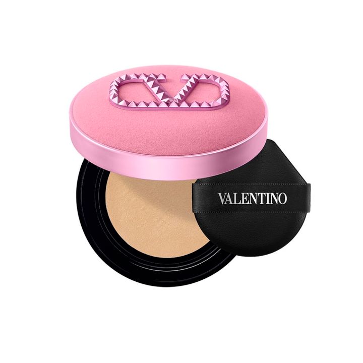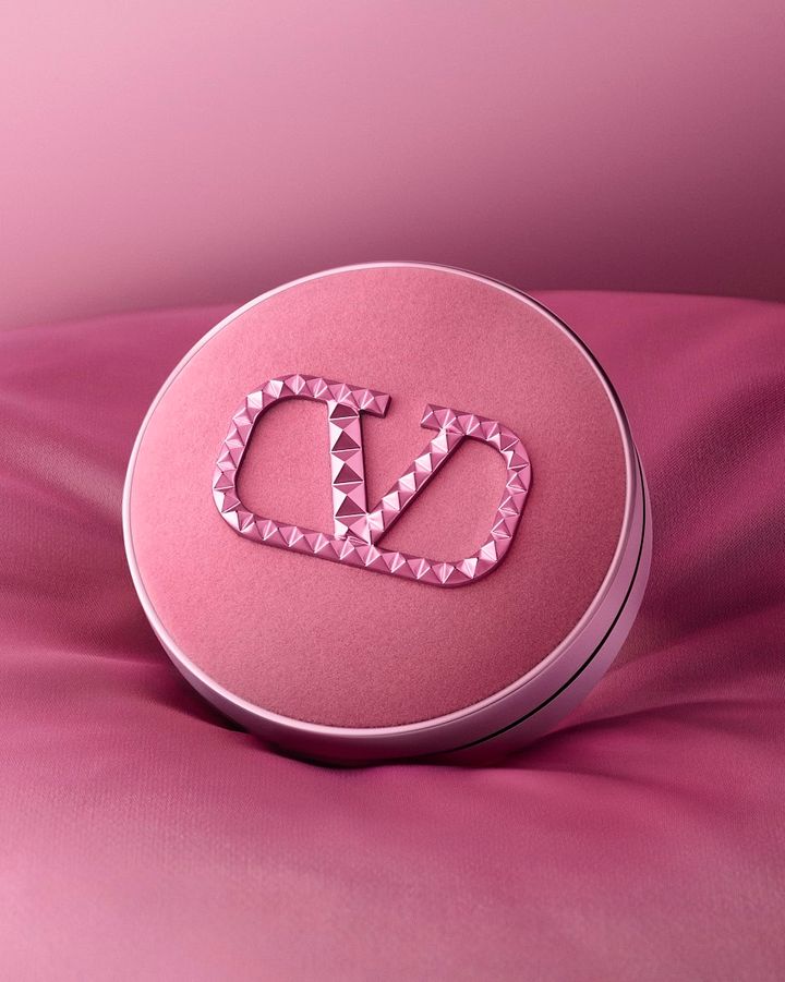 パッケージにはセミマットメタリックとベルベットの異なる素材が掛け合わされ、中央にはピンクのスタッズでできたアイコニックなVロゴが輝きます。メゾンヴァレンティノのコードを反映した落ち着いたカラーパターンとロマンティックなディテールで、メゾンの最新コレクションと調和するよう設計されたデザインに。
