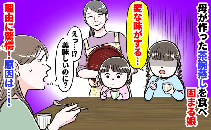 「変な味…」母が作った茶碗蒸しを食べ固まる娘。もしや…!ひと口食べビクッ!驚愕の理由が明らかに!