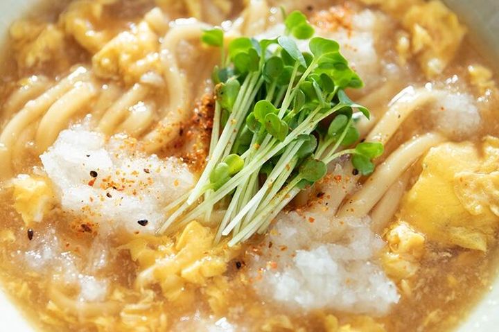 【ふわっふわ卵と大根おろしの薬膳うどん】胃をいたわりたいときにうってつけ「かきたまみぞれ甘酒うどん」