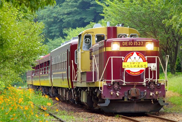 「わたらせ渓谷鐵道(わたらせけいこくてつどう)」は、群馬県の桐生駅~栃木県の間藤駅を結ぶ44.1kmの鉄道。売りはなんと言っても“豊かな自然”。渡良瀬川沿いを蛇行して走りながら、新緑や紅葉、四季折々の草花、雄大な渓谷など、大自然を満喫する片道約1時間20分の旅が楽しめます。特に、土・日曜、祝日限定で走行する窓ガラスのないトロッコ列車は、自然が織りなす渓谷美をダイレクトに楽しめるとあって人気です。