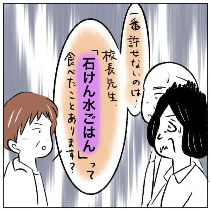 校長先生は「石けん・・水ごはん・・?」と口に出しながら、これまで以上に青ざめます。