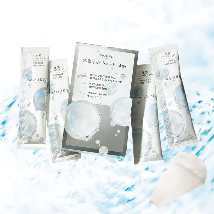 非常に小さい水素分子を1包ずつアルミパウチに充塡し、水素を抜けにくくした技術の成功で、水素トリートメントが自宅で手軽にできるようになりました。また水素の微細な泡をトリートメントに閉じ込めることで、高濃度化を実現!ほかにも浸透型ケラチンがハリ・コシを導き、吸着型ヒアルロン酸で洗い流した後も潤いをキープ。エムキュア 水素トリートメント 13g×4包 ¥1,870