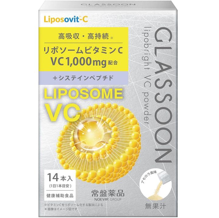 【商品名】グラスーン リポブライト VC パウダー[健康補助食品]「名称 ビタミンC含有加工食品」【原材料名】還元麦芽糖水飴(国内製造)、マルトデキストリン、酵母エキス(酵母エキス、デキストリン)、でん粉/ビタミンC、グリセリン、ステアリン酸Ca、微粒二酸化ケイ素、レシチン、甘味料(ステビア、スクラロース、アセスルファムK)、ナイアシン、ビタミンB6、香料、ビタミンB2【内容量】3g【賞味期限】2026.04/A5【保存方法】直射日光、高温多湿をさけて保存してください。【お召し上がり方】1日当たり1本を目安に、そのまま又は水かお湯でお召 し上がりください。【摂取上の注意】本品の摂取により、体質・体調に異常を感じた場合には、摂取を中止し、医師にご相談ください。原材料をご確認の上、食物アレルギーが心配な方は、お召し上 がりにならないでください。【使用上の注意】開封後はなるべく早めにお召し上がりください。まれに色・風味のばらつきや、固まりができたり、変色する場合がありますが、品質には問題ありません。食生活は、主食、主菜、副菜を基本に、食事のバランスを。【販売者】常盤薬品工業株式会社 神戸市中央区港島中町6-13-1【製造所】株式会社東洋新薬 佐賀県鳥栖市弥生が丘7-28【お問い合わせ先】常盤薬品工業株式会社 お客さま相談室:0120-875-710 MADE IN JAPAN