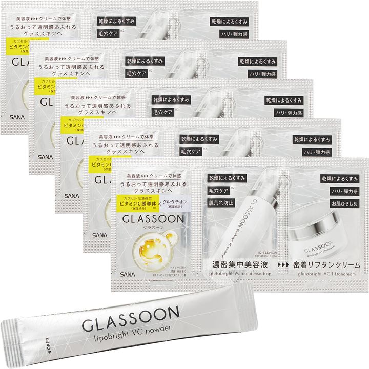 【販売名】サナ グラスーン グルタブライト VC コンデンスドロップ【全成分】水、BG、アスコルビルグルコシド、エタノール、グリセリン、メチルグルセス-10、メチルグルセス-20、アスコルビン酸、3-O-エチルアスコルビン酸、グルタチオン、サッカロミセスセレビシアエエキス、アルブチン、トコフェロール、トコトリエノール、セラミドNP、セラミドAP、セラミドNG、ティーツリー葉油、ツボクサエキス、ヒアルロン酸ヒドロキシプロピルトリモニウム、リボフラビン、ビオチン、サッカロミセス/デイリリー花発酵液、ビルベリー葉エキス、カルボキシメチルフェニルアミノカルボキシプロピルホスホン酸メチル、アラントイン、PEG-60水添ヒマシ油、キサンタンガム、クエン酸、クエン酸Na、コメヌカ油、ソルビトール、ヒドロキシエチルセルロース、フィトステロールズ、ペンテト酸5Na、ポリアクリル酸Na、金、水酸化Na、水添レシチン、フェノキシエタノール、香料、メチルパラベン【使用上の注意】お肌に異常が生じていないかよく注意して使用してください。お肌に合わないときは、ご使用をおやめください。【使い方】化粧水のあと、手に適量をとり、お顔全体にやさしくなじませてください。