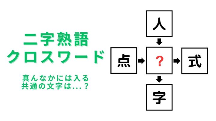 【二字熟語クロスワード】真んなかに入る漢字は?誰でもわかる簡単問題!