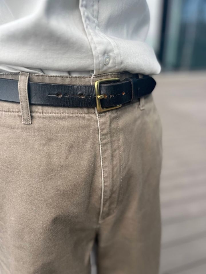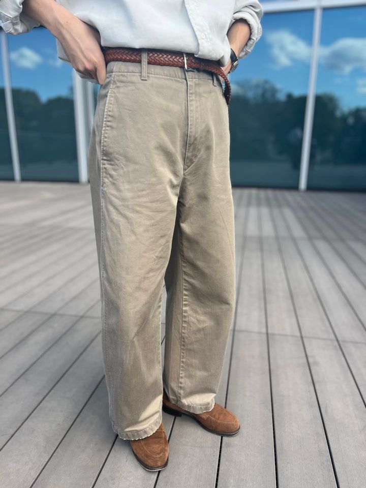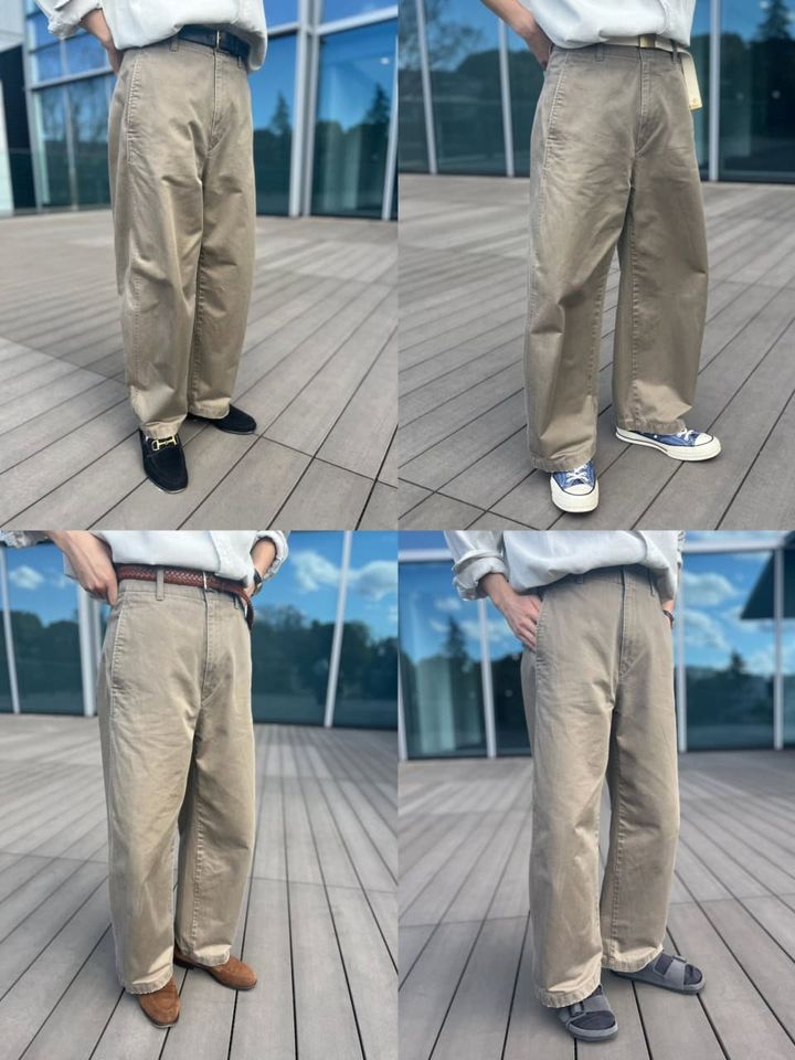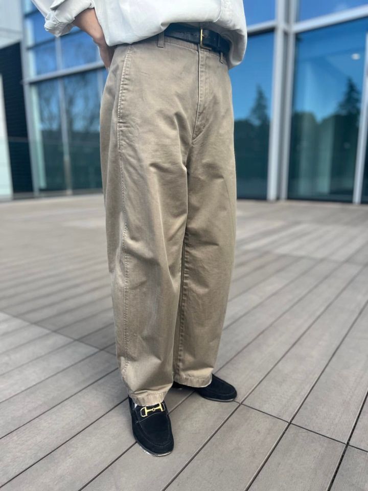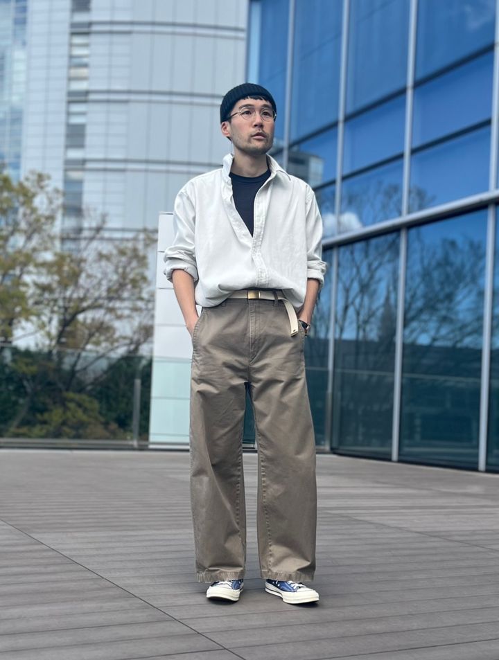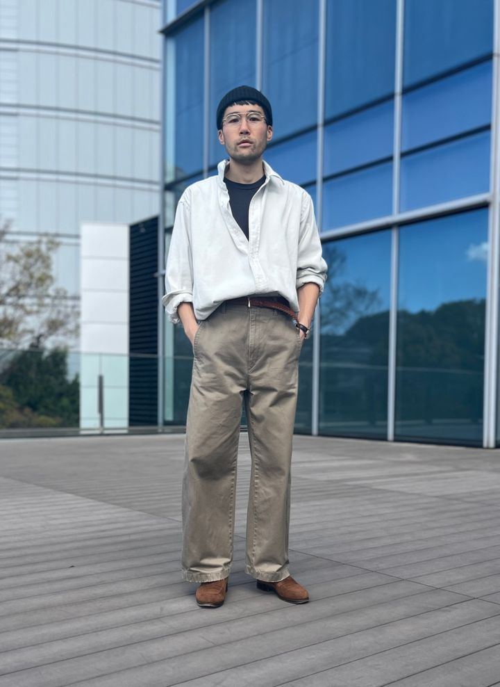 チノパンと同じ同系色なので、茶のベルト&靴で仕上げると下半身に統一感が生まれます