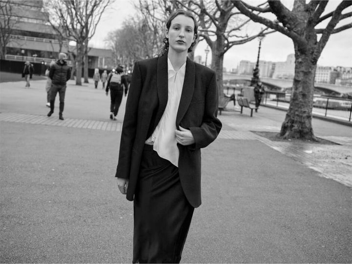jacket ¥630,300, top ¥344,300, inner top ¥171,600, skirt ¥199,100 and trousers reference item by THE ROW THE ROW JAPAN