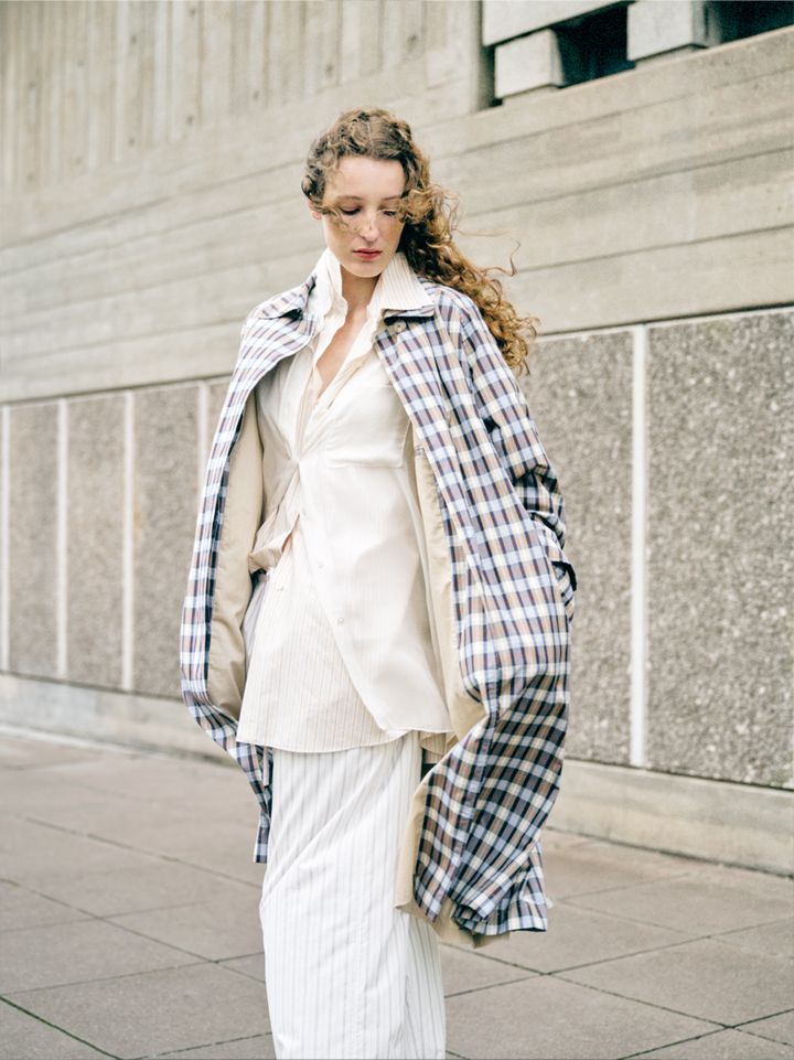 無機質なモダニズム建築に溶け込む「THE ROW」のスプリングコレクション。凛とした佇まいに宿るのは、メゾンの哲学と革新を追求するアティチュード。春風をまとい、グレイッシュなランドスケープにたおやかなフォルムを描き出す。“THE ROW” Spring Collection harmonizes with the inorganic modernist architecture.The attitude of pursuing innovation and the philosophy of the House are embodied in its dignified presence.With the spring breeze, it traces a graceful form in the grayish landscape.Photography by Wai Lin TseStyling by Mayu TakahashiHair by Yumi Nakada-DingleMake up by Philippe MilettoModel by Emily Bennett at Select ModelProduction by RAW Production