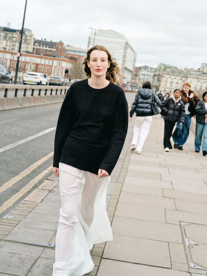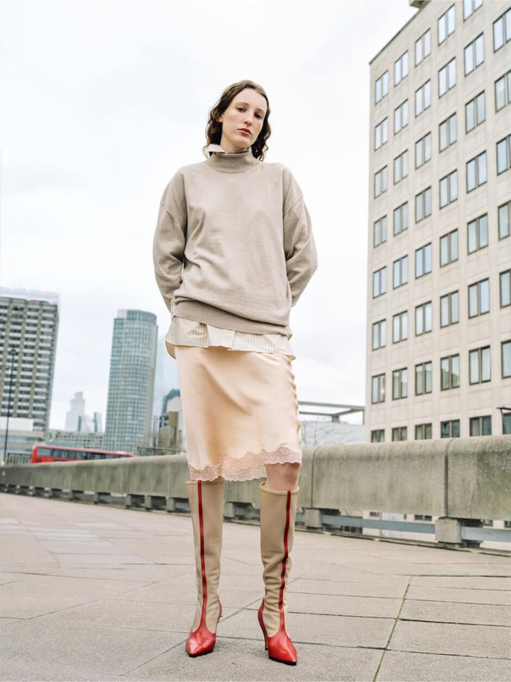 top ¥268,400, shirt ¥223,300, skirt ¥199,100 and boots reference color ¥308,000 by THE ROW THE ROW JAPAN