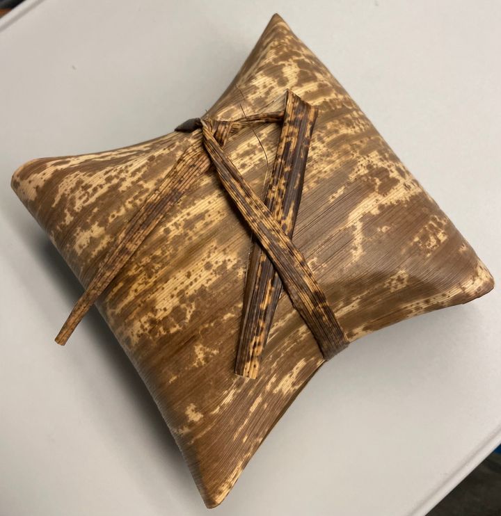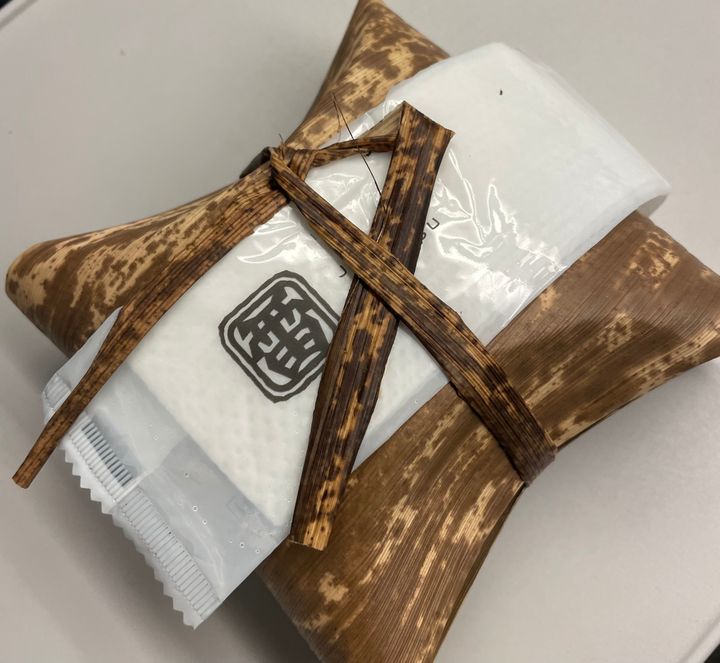 包装紙を開けると竹の皮に包まれている、可愛いサイズの天むすが登場し食べる前から旅行感がでるのでワクワクしてしまうこと間違いなしです。