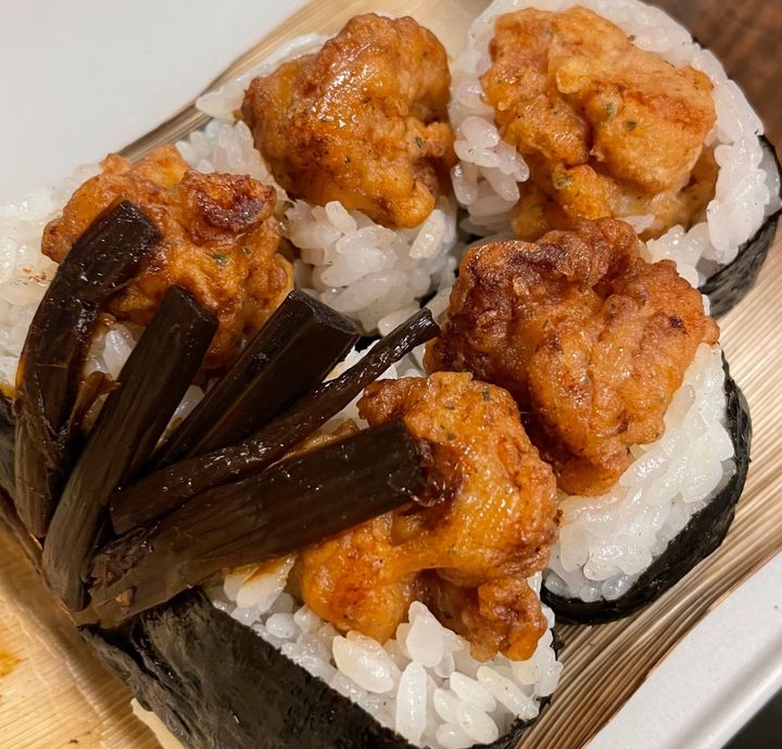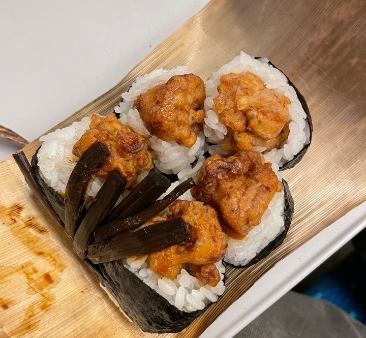 味がとても上品。ふっくらもちもちのご飯に、プリッとした海老の天ぷらを包んだ小ぶりなおむすびです🍙