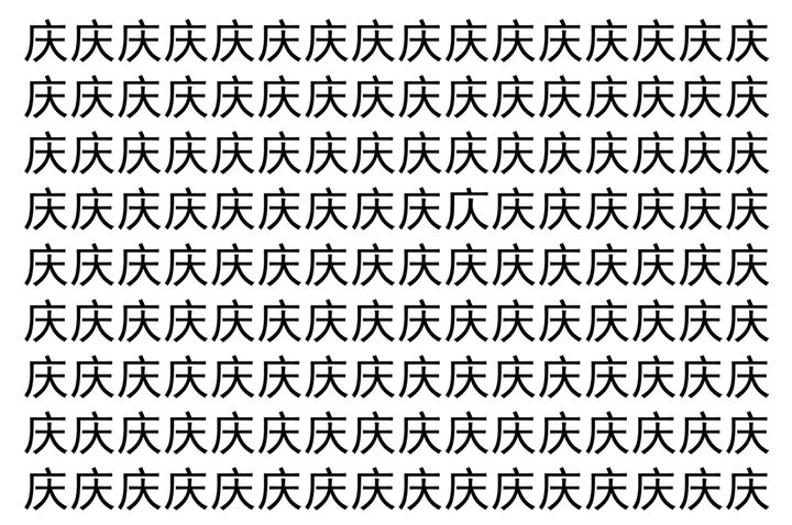 画像に並んだたくさんの「庆」という漢字。 その数144個なのですが・・・、実はその中に1つ違う漢字が紛れ込んでいます!!