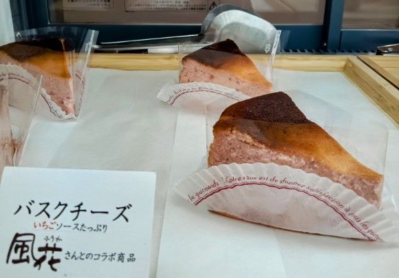 有名な風花さんとのコラボ、バスクチーズケーキ↑これは自慢のいちごソースをたっぷり使用していて、ピンク色が何とも言えずおいしそう…。風花さんに行っても食べられない、ここまるなカフェ専用メニュー。