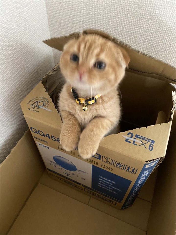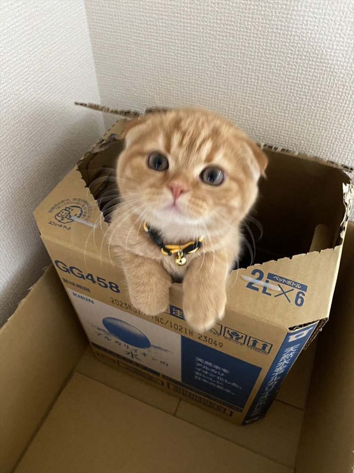 箱に入ってかくれんぼをしていたスコティッシュフォールドの子ネコ。 そのかわいい姿が反響を呼んでいます!