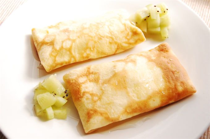 ひっくり返したら、もう片面を10秒間ほど焼き、皿に取り出せば、クレープの出来上がり。