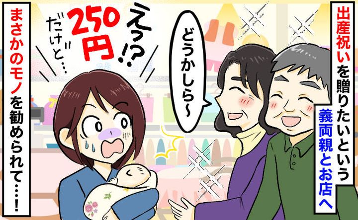 「出産祝いがまさかの250円!?」義両親からの“お祝いの品”に絶句。夫が不在で何も言えず…その後