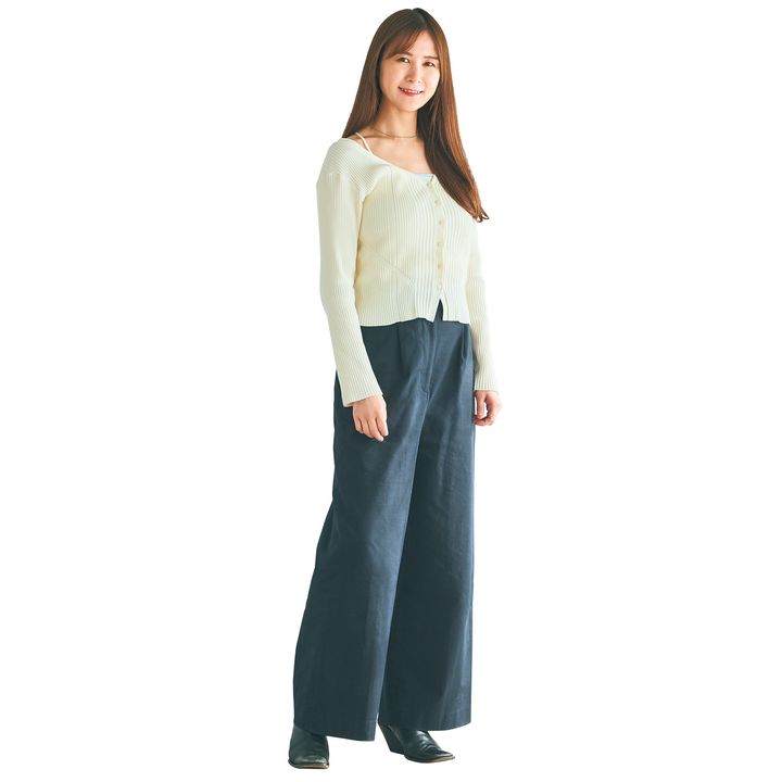 カーディガン¥15,300(アテニア)Tシャツ¥4,990(アンフィーロ)イヤリング¥6,600(カリーヌサルタン/ココシュニック新宿タカシマヤ店)ネックレス¥167,200(ココシュニック)