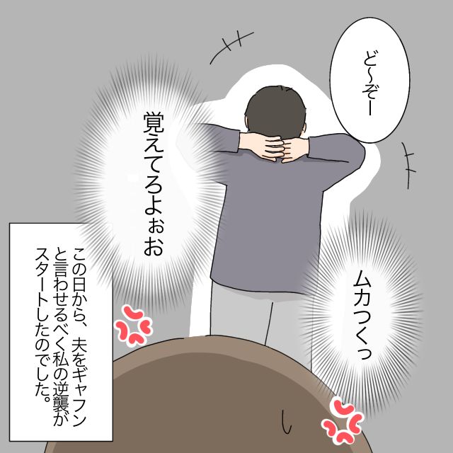 すると、「ど~ぞー」と言いながら部屋を出て行くたかしさん。その後ろ姿を見て、「ムカつくっ!覚えてろよぉお」と心の中で呟くかなえさんは、この日から、夫をギャフンと言わせるべく、かなえさんの逆襲がスタートしたのでした。