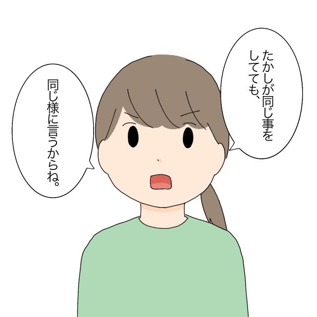 「たかしが同じ事をしてても、同じように言うからね」かなえさんはキッパリ言いました。