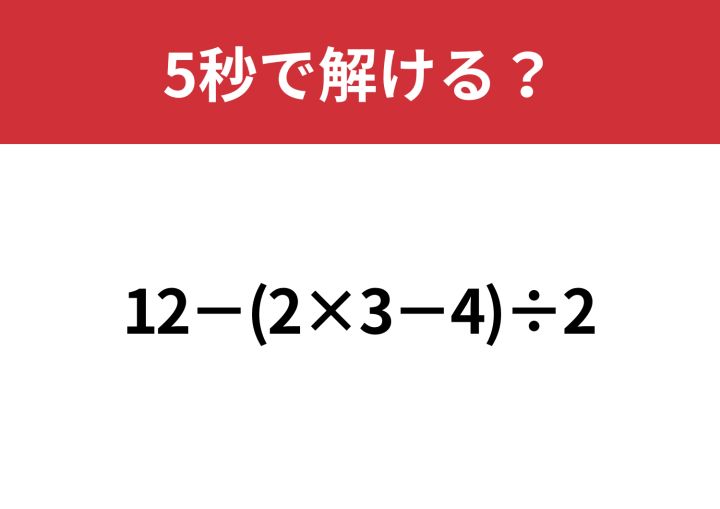 大人でも解けない人が多いかも?「12−(2×3−4)÷2」5秒で解ける?