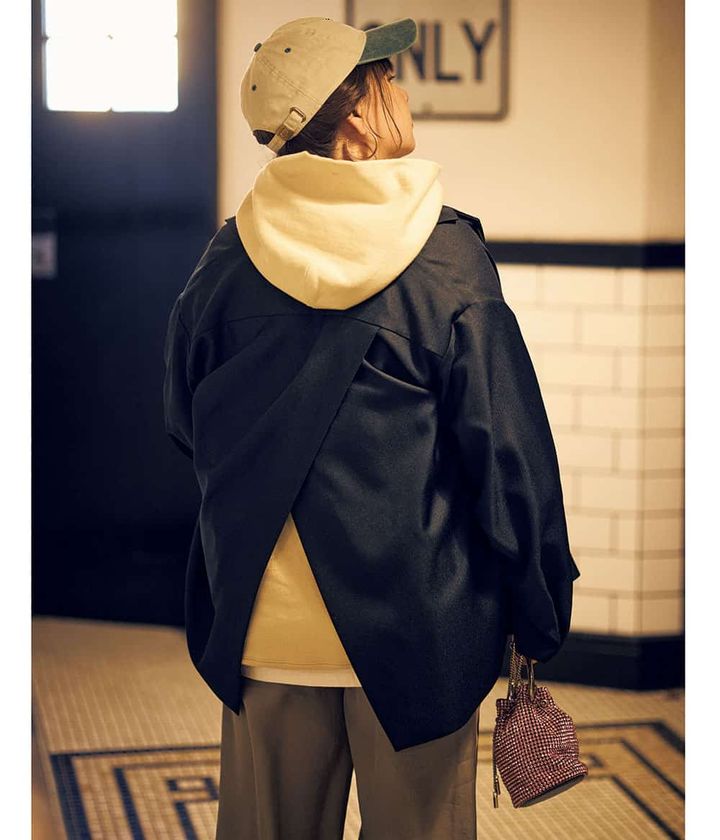 ジャケット¥29,700シャツ¥18,920パンツ¥18,920(すべてメゾンスペシャル/メゾンスペシャル 青山店)バッグ¥25,300(ノマディス/ノーベルバ)ピアス¥11,000(ワンエーアールバイウノアエレ/ウノアエレ ジャパン)リング¥20,900(バルブス/ZUTTOHOLIC)