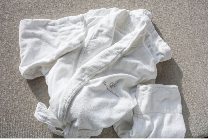 そしてこのバスローブ。手摘みしたウズベキスタン綿を100%使用し、今治で製法された特別なバスローブ。毛足はそれほど長くないのにふんわりとしていて、肌にしっとりとなじむような艶と柔らかさがあります。程よい厚みなので羽織っていても動きを邪魔しないのも着心地のよさを感じさせるポイント。