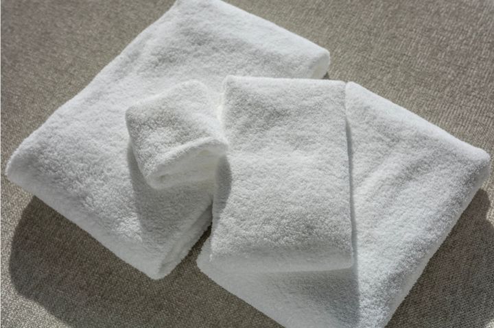 大判タオルのサイズはブランケットぐらいの大きさがあって、このぜいたくなゆとりはラグジュアリーホテルならではのリッチさを感じる部分です。