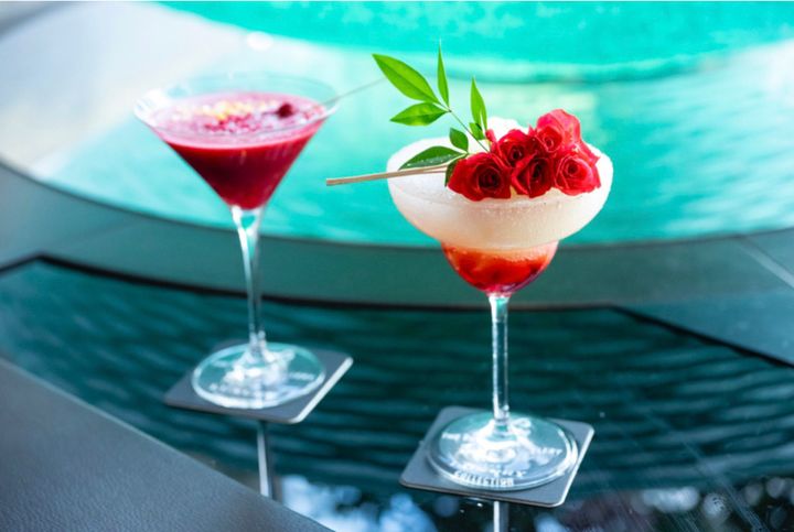素晴らしい技術をもつバーテンダーが作る美しいカクテルは、種類が豊富でどれもおすすめですが、有名な海外のホテルガイドで5ツ星を獲得した記念に作られた「プリンス ギャラリー エレガンス」3500円(サービス料別、写真手前)や、フルーツの甘ずっぱさが女性に人気の「ラズベリー&パッション マティーニ」2700円(サービス料別、写真奥)は口をつけるのがもったいないほどビジュアルも素晴らしいです。